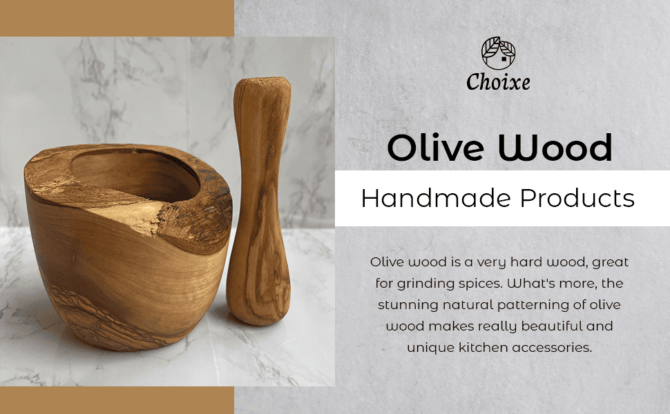 Olive wood is a very hard wood; great for grinding spices. Moreover; the stunning natural patterning of olive wood makes this a beautiful mortar and pestle.